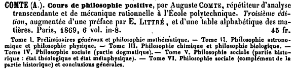 Isidore Marie Auguste François Xavier Comte, (1798 - 1857) Cours de philosophie positive (1830) « Tous les phénomènes quelconques, inorganiques ou organiques, physiques ou moraux, individuels ou sociaux, sont assujettis à des lois rigoureusement invariables » (t. VI, p. 655) qualifie l'anthropologie de septième science |